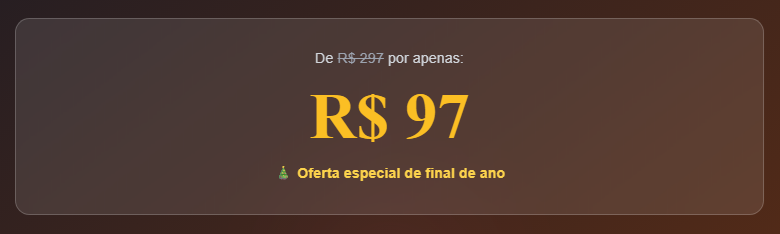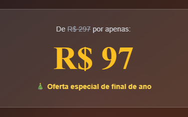Por que sei o quanto é frustante chegarmos no final do ano e ver que os nossos sonhos não se realizaram...que mais uma vez não vamos poder dar a vida que sonhamos para nossos amados...e muitas vezes eu desejei comprar um bom treinamento mas não tinha dinheiro...por isso estou te dando essa oportunidade, por pouco tempo o treinamento completo com o Ebook, os Áudios e o Caderno da Manifestação estarão com o preço promocional, é minha contribuição por tudo o que tenho recebido do universo!
